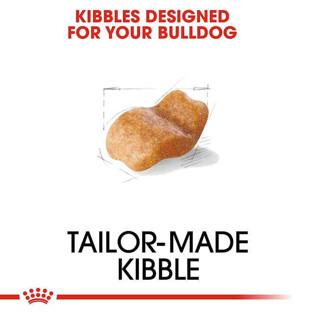 A kibble exclusively designed to make it easier for your Bulldog to pick up and to encourage him to chew.