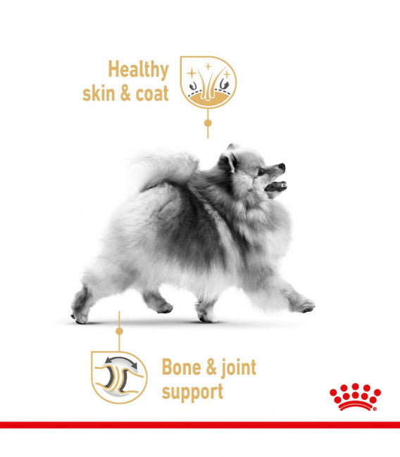 ROYAL CANIN® Pomeranian Adult Loaf contains an adapted mineral content and other specific nutrients to help support the health of your dog’s bones, joints, cartilage, and ligaments.