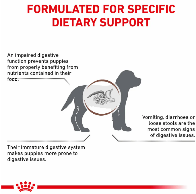 ROYAL CANIN® Canine GASTROINTESTINAL PUPPY dry is formulated to meet the nutritional levels established by the AAFCO Dog Food Nutrient Profiles for growth, including growth of large size dogs (70 lb. or more as an adult), gestation, and lactation.