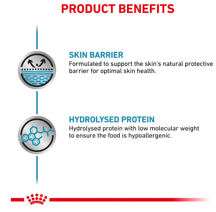 Thanks to the inclusion of a hydrolysed soya protein isolate, ROYAL CANIN® Canine Hypoallergenic Loaf contains a limited molecular weight for very low allergenicity. ROYAL CANIN® Canine Hypoallergenic Loaf also contains a specially formulated complex of nutrients that combine to help support the natural protective barrier role of your dog’s skin to support optimal skin and coat health. When a food allergy or a food intolerance is suspected, your dog’s diet should be changed following the appropriate food transition period. Nutritional management with Hypoallergenic Loaf may be continued for the dog’s lifetime. It is recommended to divide the daily intake into 2 meals. As part of the ROYAL CANIN® Veterinary Range, it is important that this product is only given to your pet when recommended by a veterinary professional. ROYAL CANIN® Canine Hypoallergenic Loaf is not recommended in cases of acute pancreatitis or during gestation, lactation, or growth. To cater to each dog’s individual preferences, ROYAL CANIN® Canine Hypoallergenic is also available as dry food, with highly palatable kibble. If you’re considering mixed feeding, make sure you follow our feeding guidelines to ensure your dog gets an accurate amount of both wet and dry food for optimal benefit.